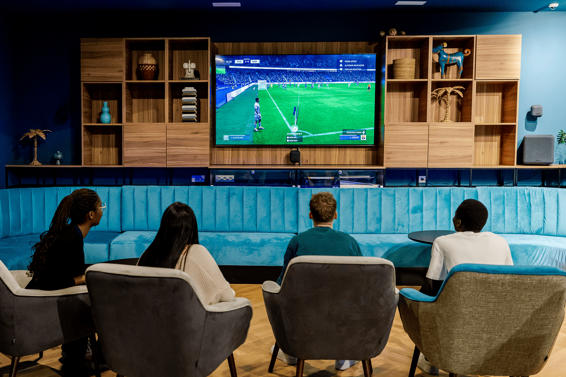Así se vive en Kadora: espacios pensados para viajes en grupo, con zonas comunes modernas, alojamiento confortable y ubicaciones clave en Granada, Sevilla, Barcelona y Oporto.