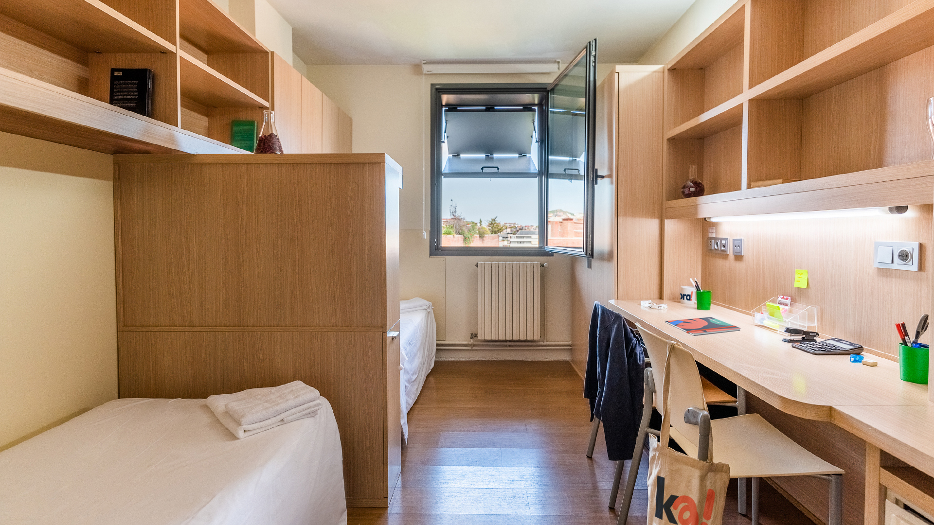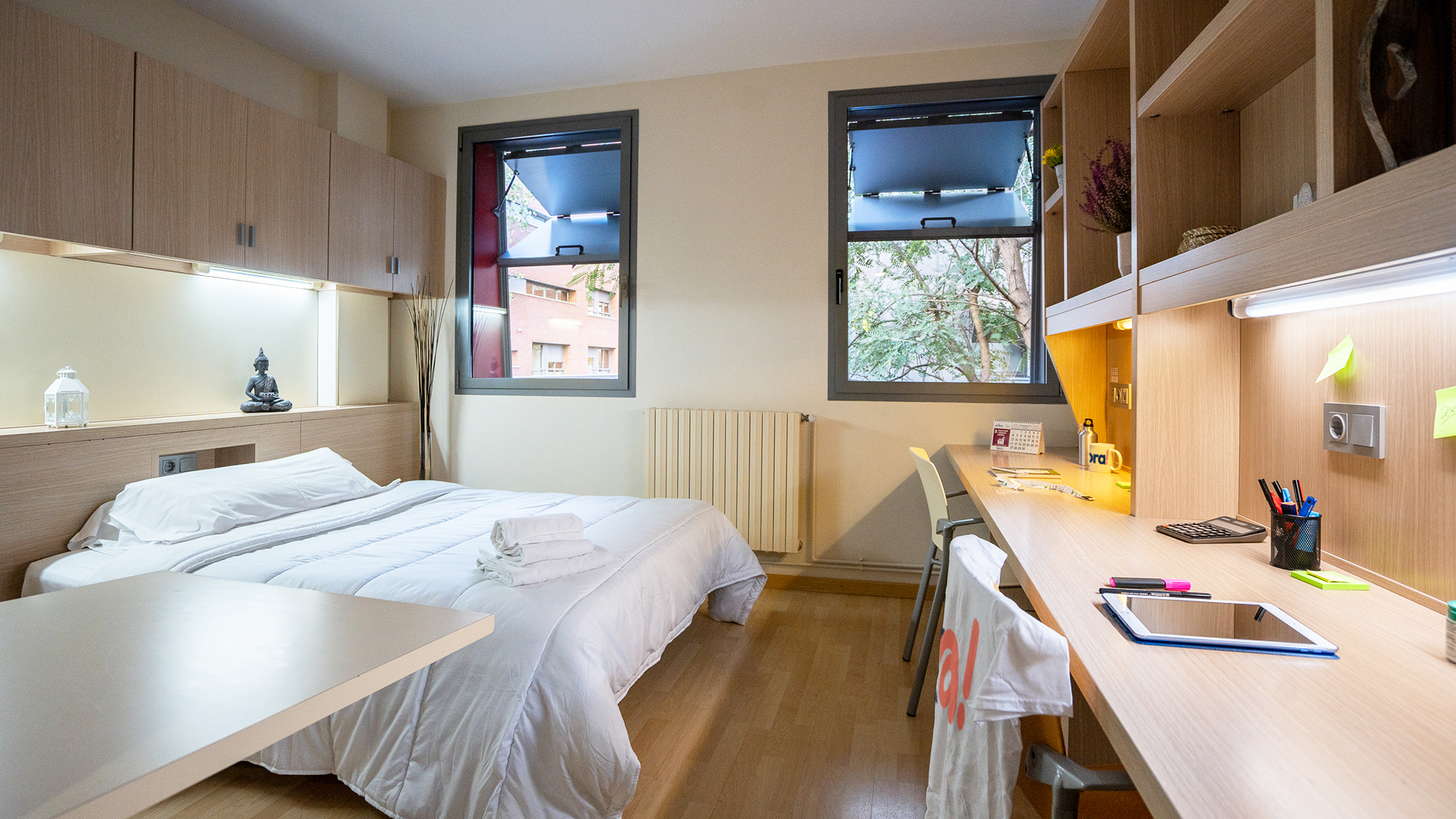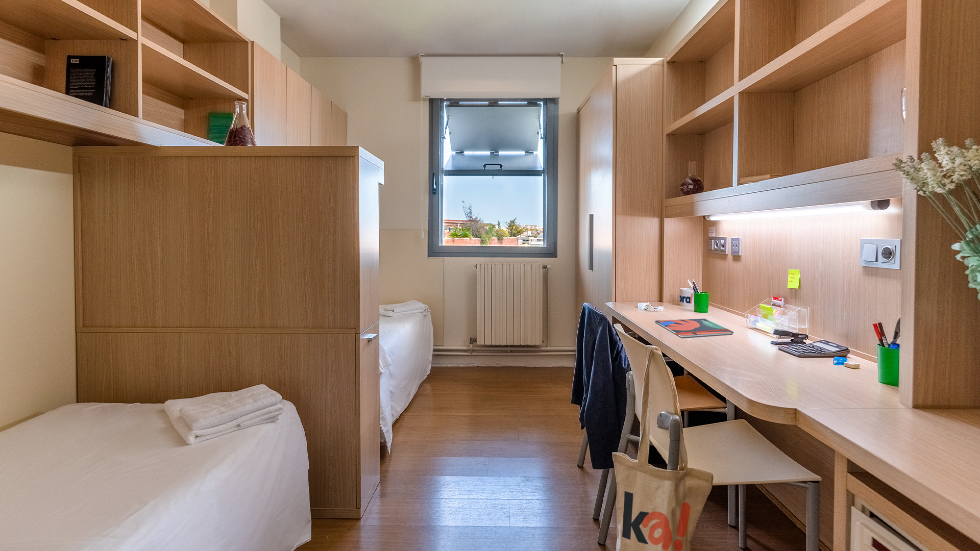 Si estás buscando compartir, nuestro estudio doble es tu mejor opción. Es un alojamiento diseñado para 2 residentes, así que incluso puedes compartirlo con tu mejor amigo. Ambos disfrutaréis de cocina completa y un baño privado en un espacio moderno y de gran amplitud.