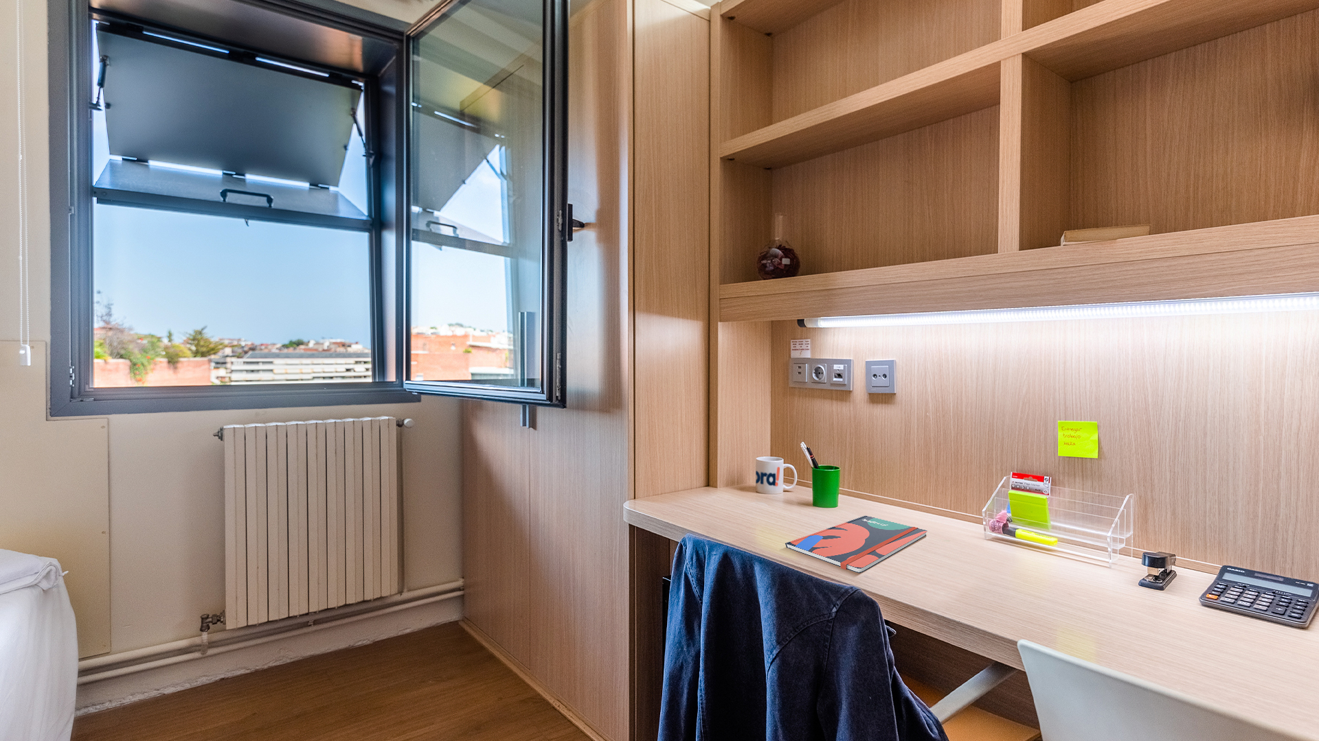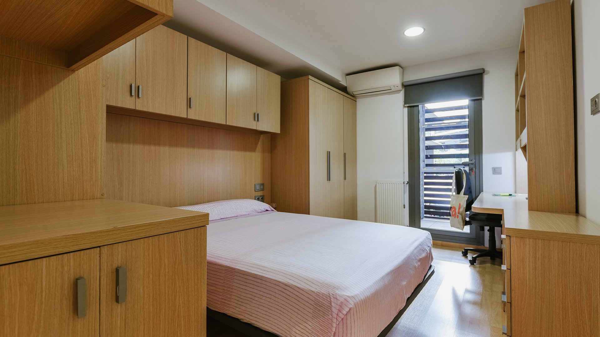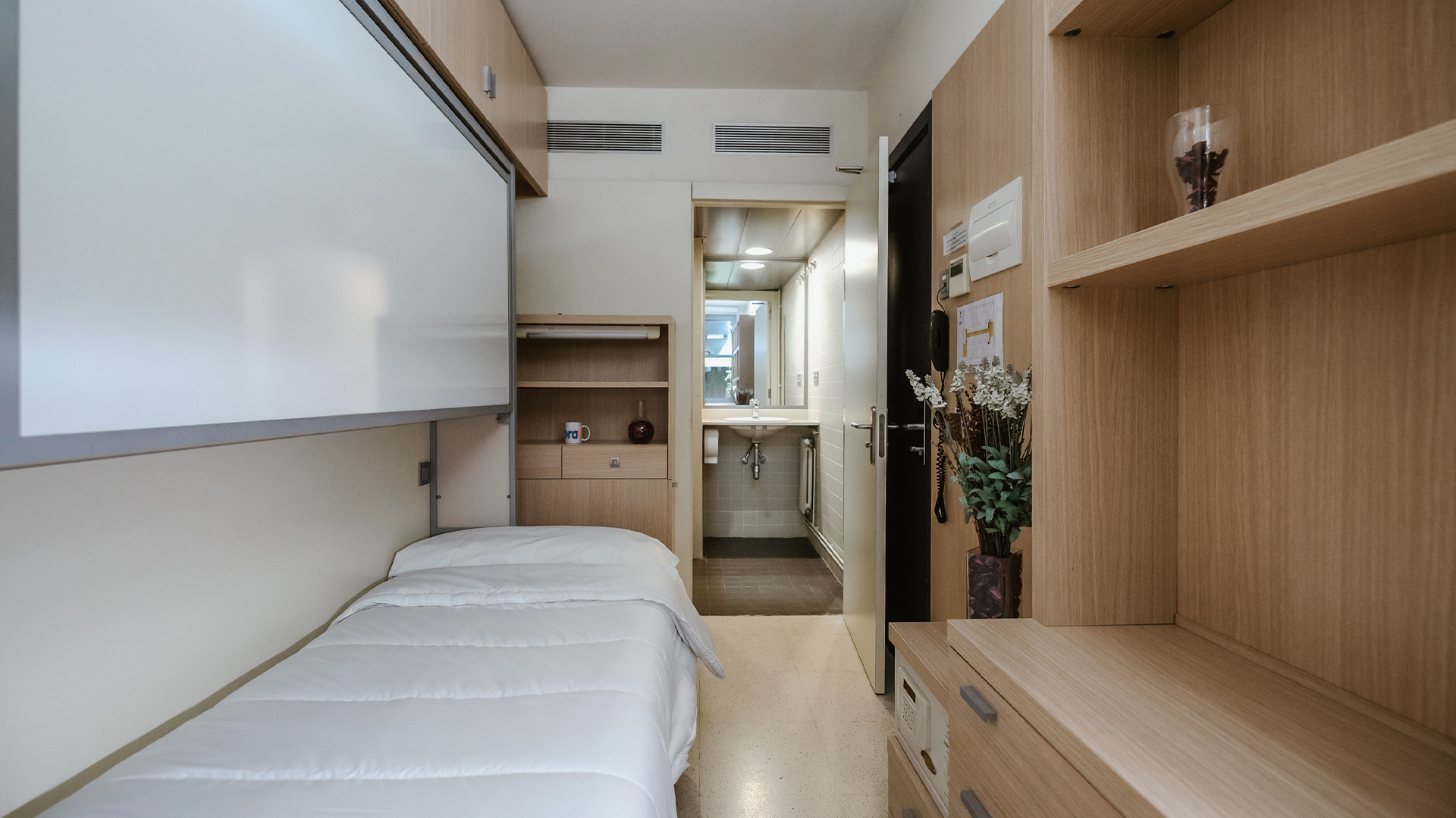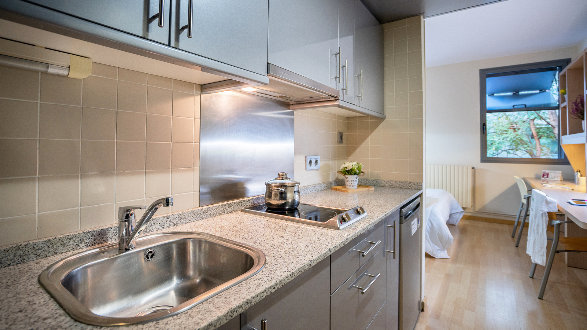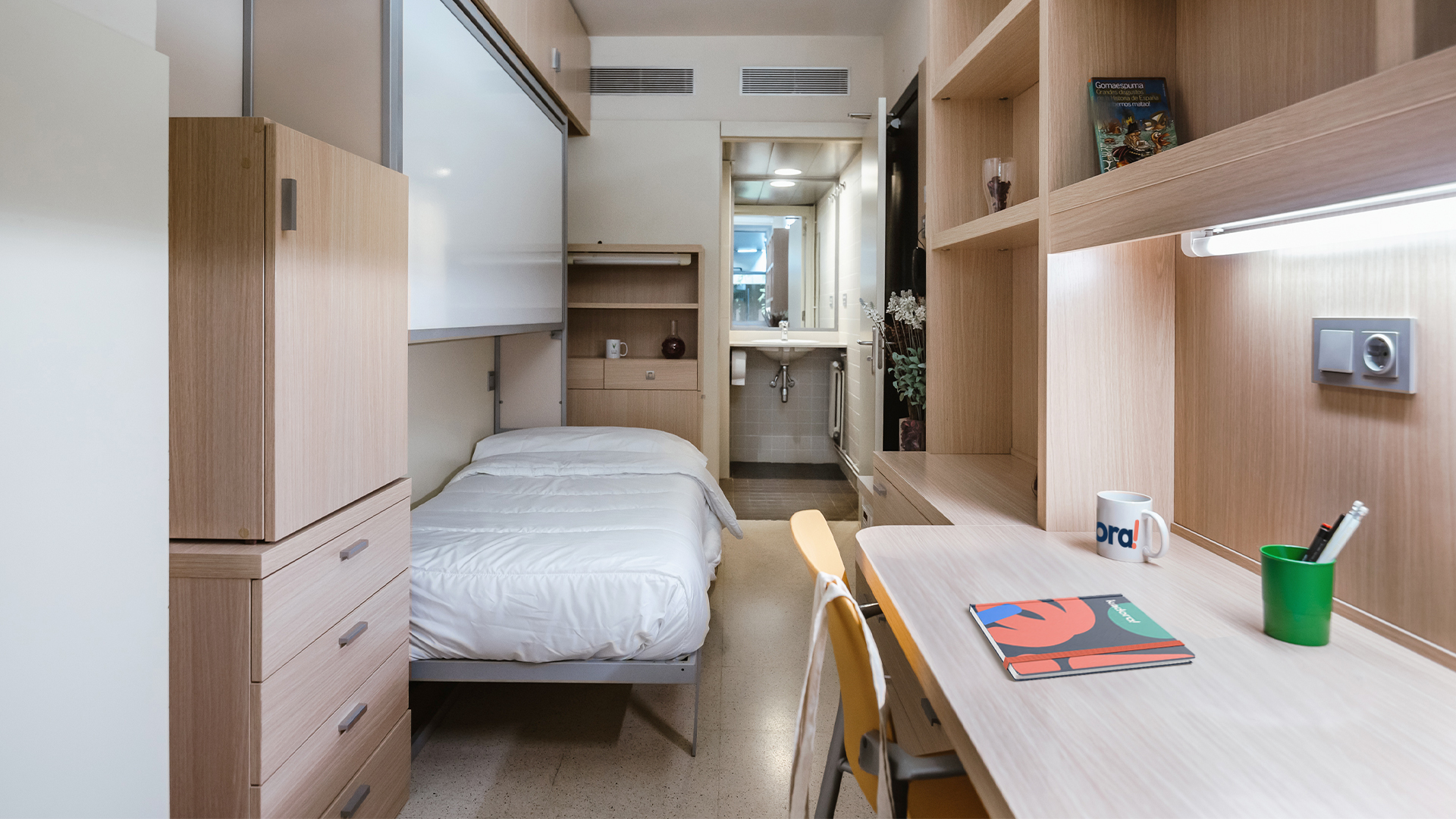 Para los que valoran la privacidad al máximo y prefieren un estilo de vida simple y cómodo, tenemos los estudios individuales. Siéntete como en casa y disfruta de tu propio cuarto de baño y cocina completa en un entorno moderno y totalmente equipado donde nada te hará falta. ¡Incluye zona de estudio con escritorio y silla ergonómica!