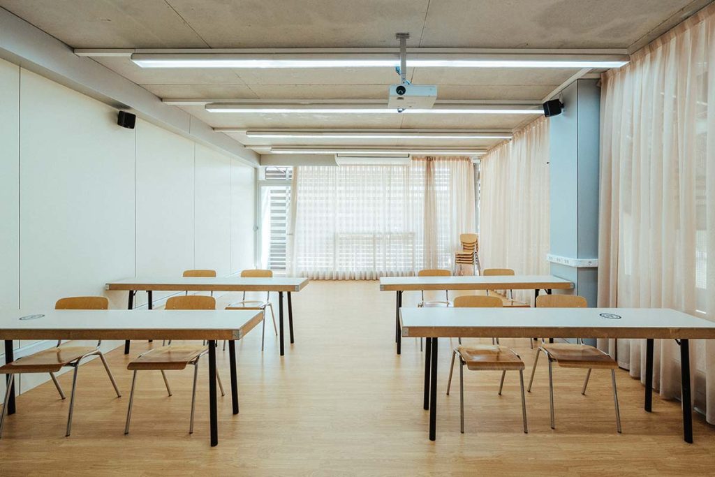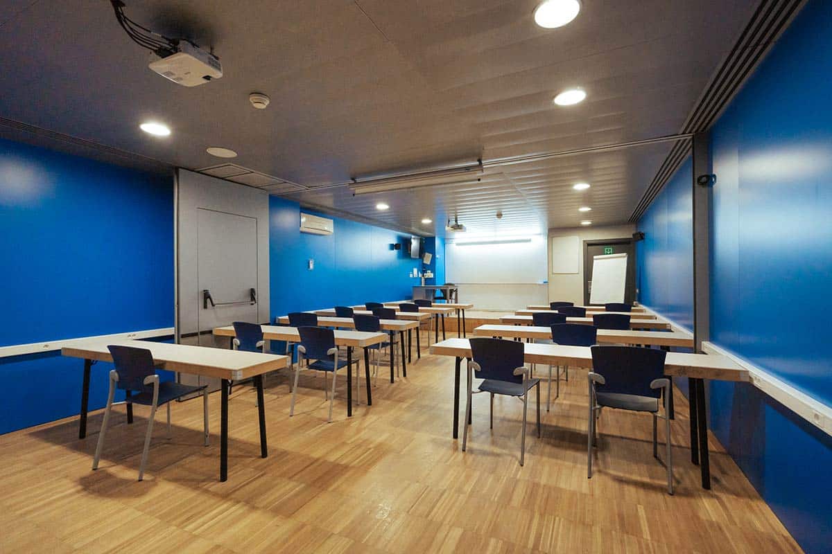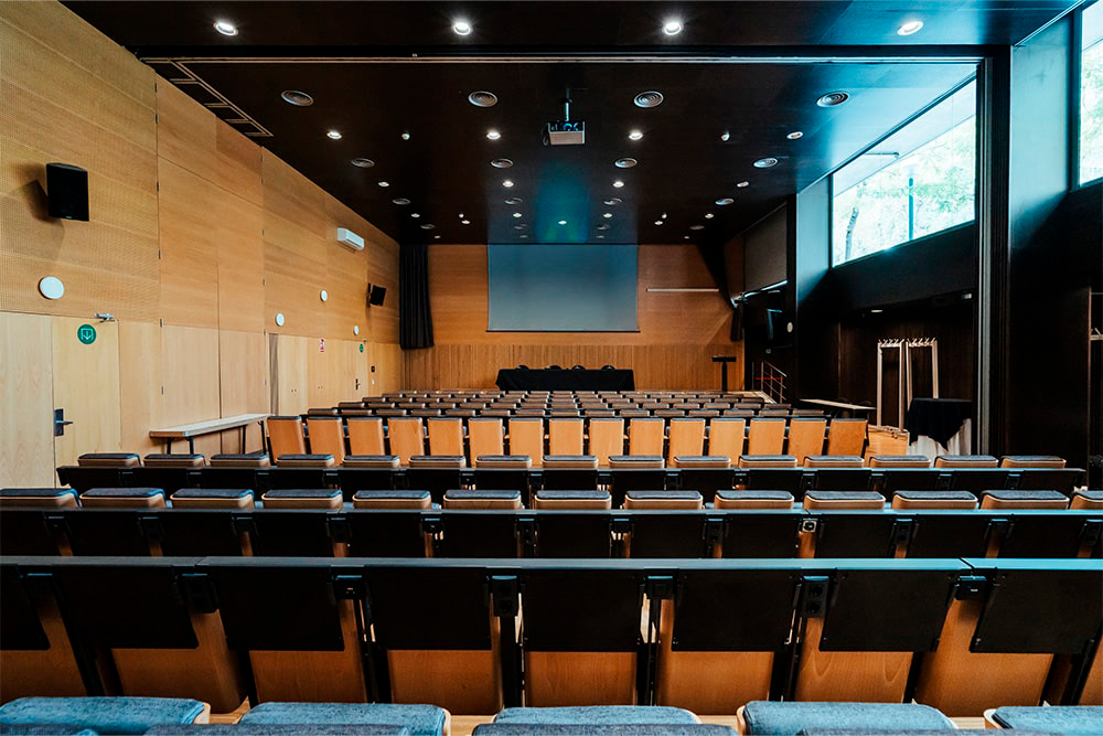 Auditorio de 280 metros cuadrados con luz exterior, capacidad para 220 pax, o 90 en panelable dividido. Pantalla gigante, pantalla anexa media y dos TV’s digitales para mentores u oradores.